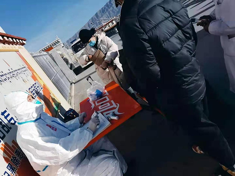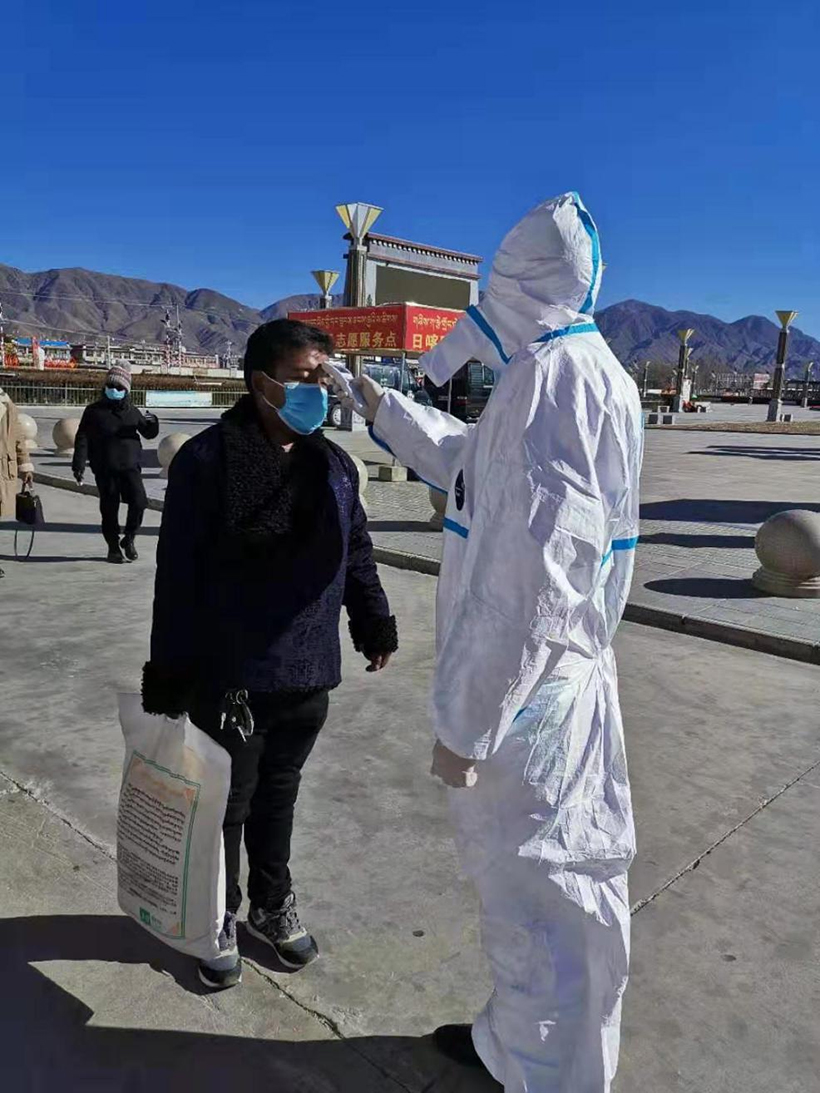 日喀則市西華醫(yī)院齊心協(xié)力為做好新型冠狀病毒疫情防控工作,為日喀則市火車站疫情防控監(jiān)測體溫工作。